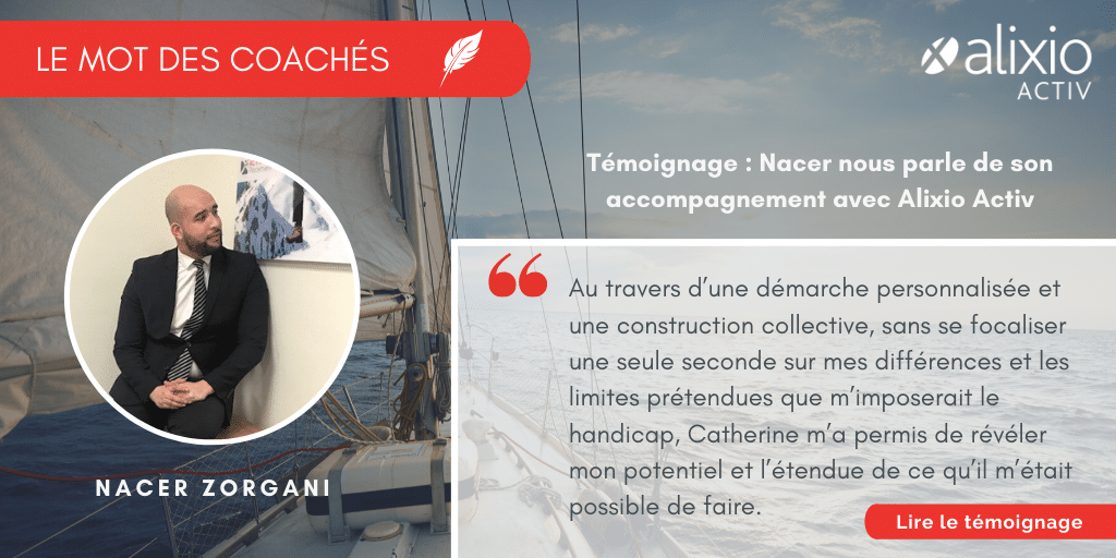 Nacer Zorgani, spécialiste Stratégie & Développement est coaché par Alixio Activ. Il nous livre son témoignage sur son accompagnement et les valeurs véhiculées par le cabinet. Mal voyant, Nacer bénéficie de techniques de coaching adaptées et d’un accompagnement sur mesure, comme tous les autres coachés.